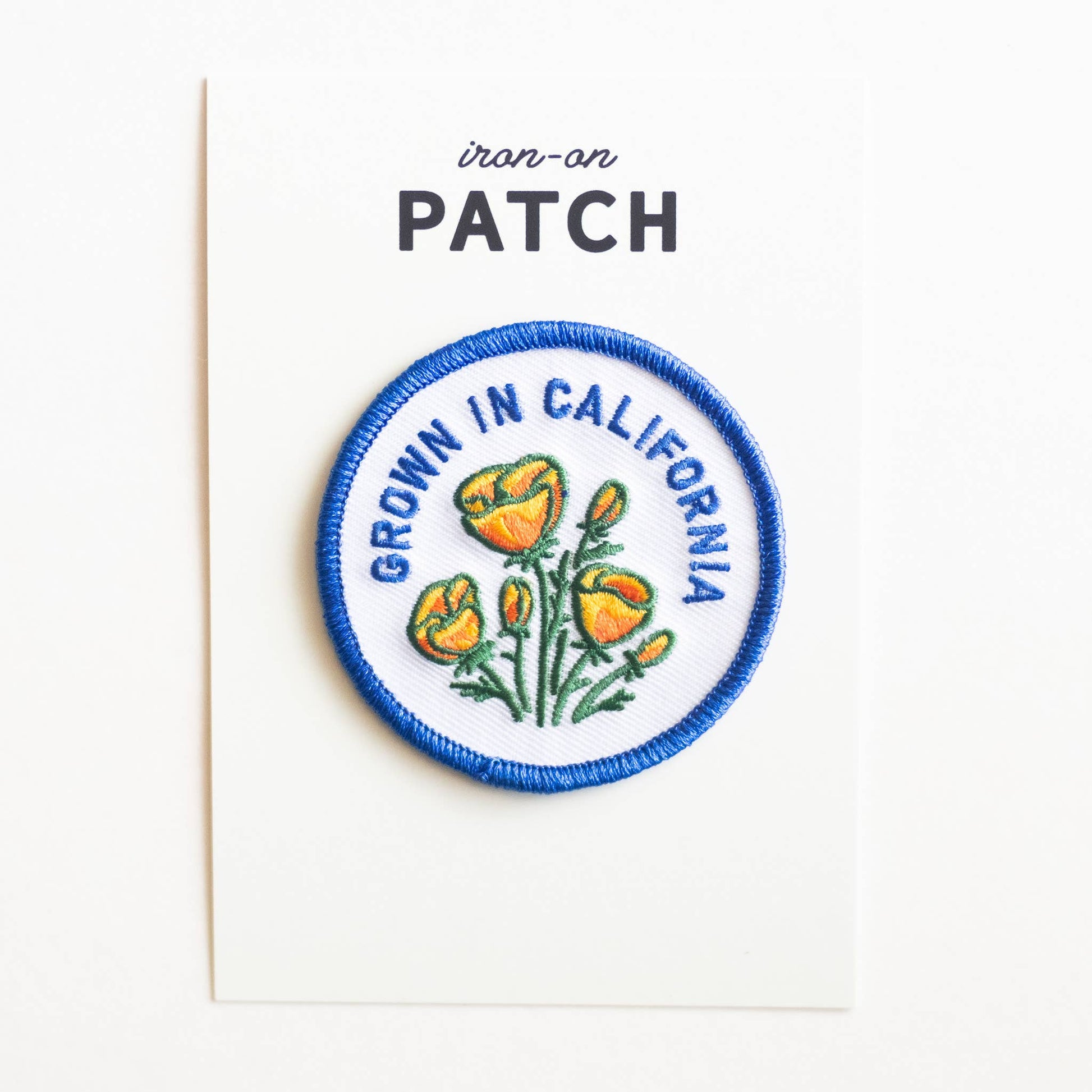 Grown In California Embroidered Iron on Patch - Golden Poppy: Yes