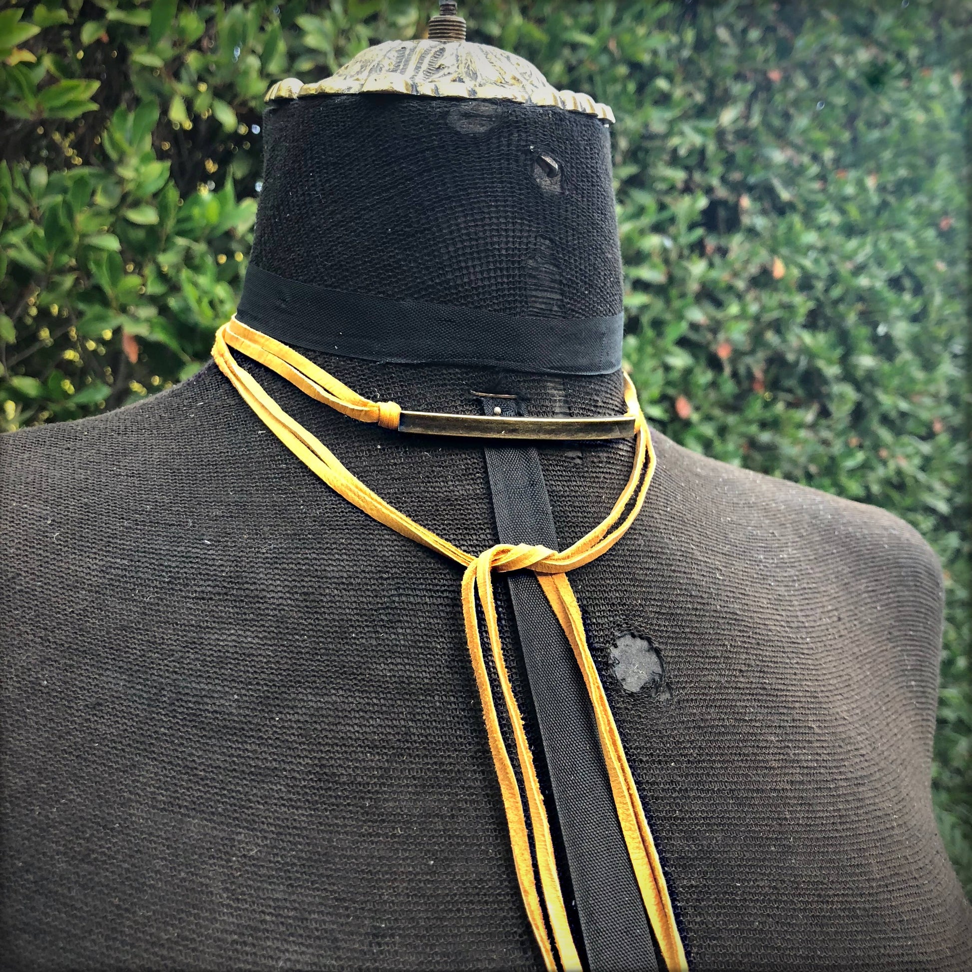 Leather Wrap Choker - Gold & Brass, Western Necklace/Hatband: Gold & Brass